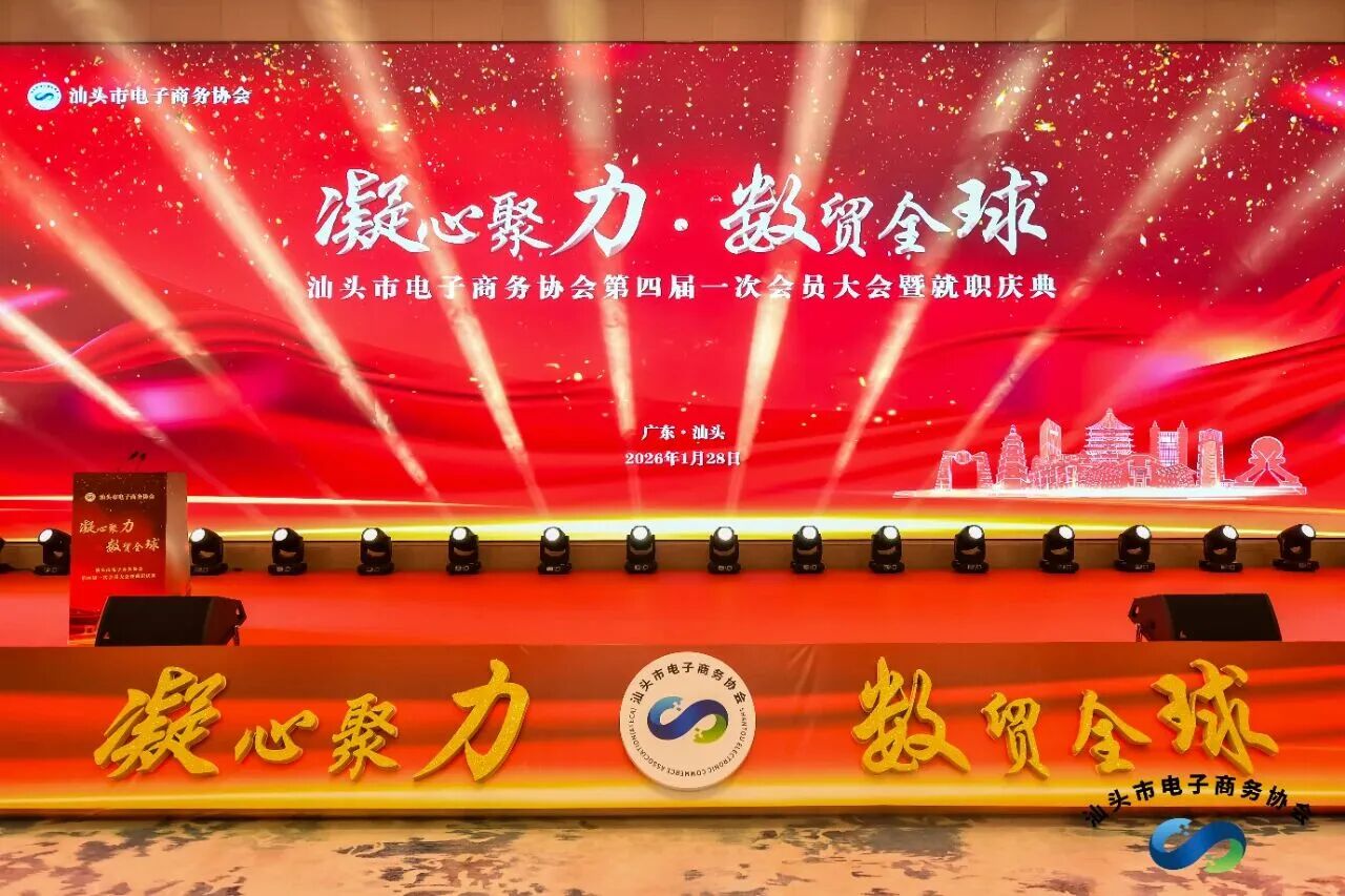 1月28日,汕头市电子商务协会第四届一次会员大会暨就职庆典在万豪酒店隆重举行,本次大会以“凝心聚力・数贸全球”为主题,既是协会换届迎新的重要里程碑,更是汕头电商行业集结全域力量、融入数字贸易浪潮的全新起点,为汕头特色产业带数字化升级、跨境电商创新发展注入强劲动能。